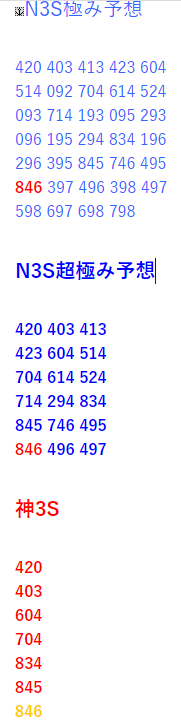 絞り込んだ予想数字です。