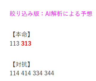 🎖️ 結果:AI厳選予想 ◎本命【313 BOX当選🎯】的中✨