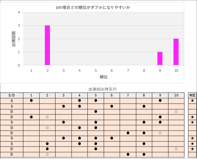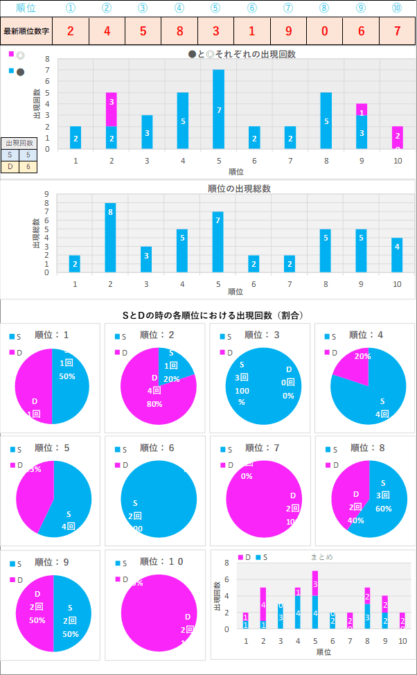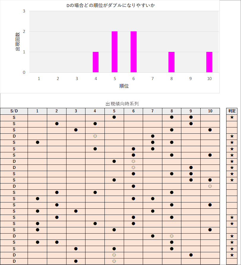 直近5回とS,Dの種類の出方を