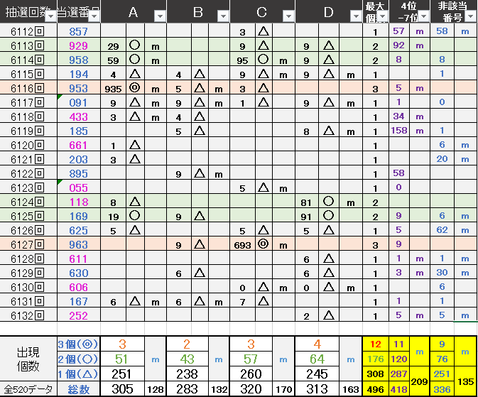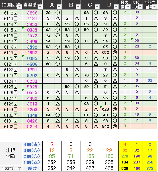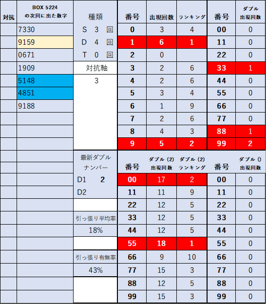 ペア数字解析データー