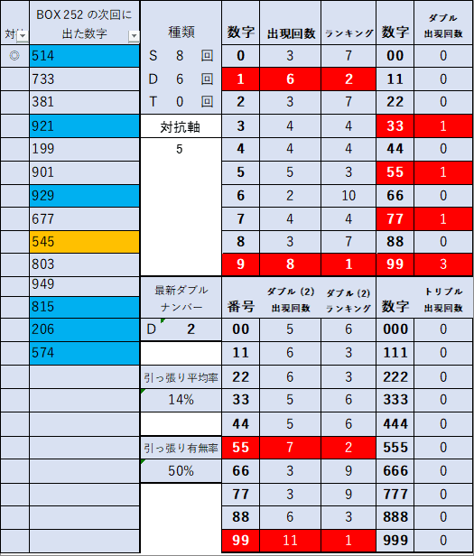前回当選番号 252