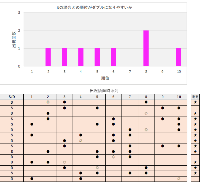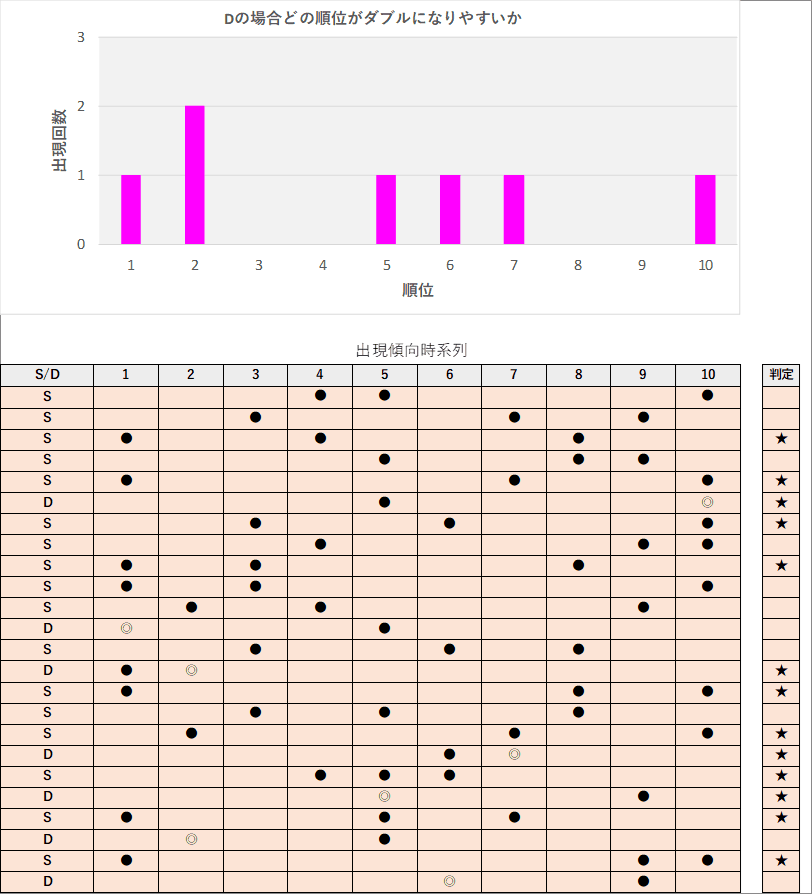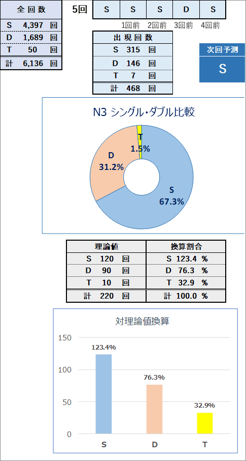 直近5回とS,Dの種類の出方を