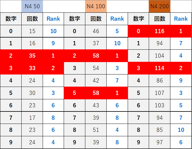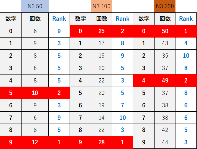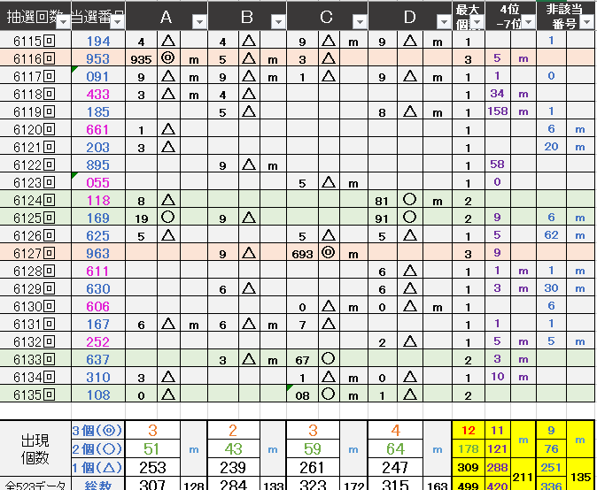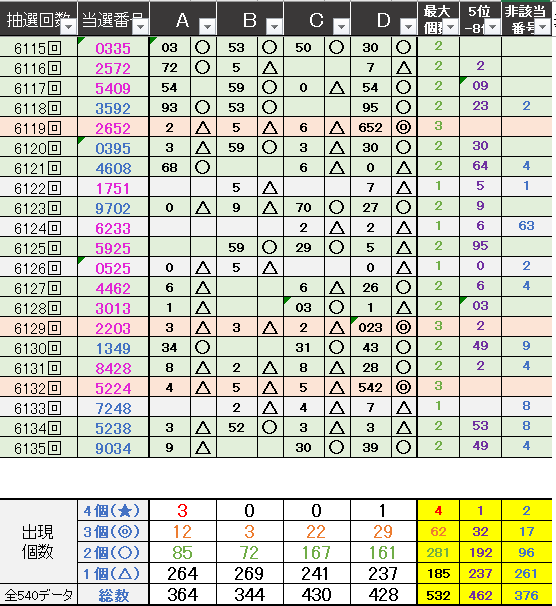 ペア数字解析データー