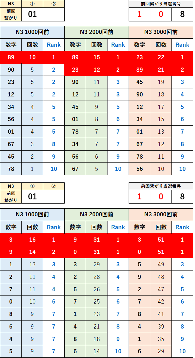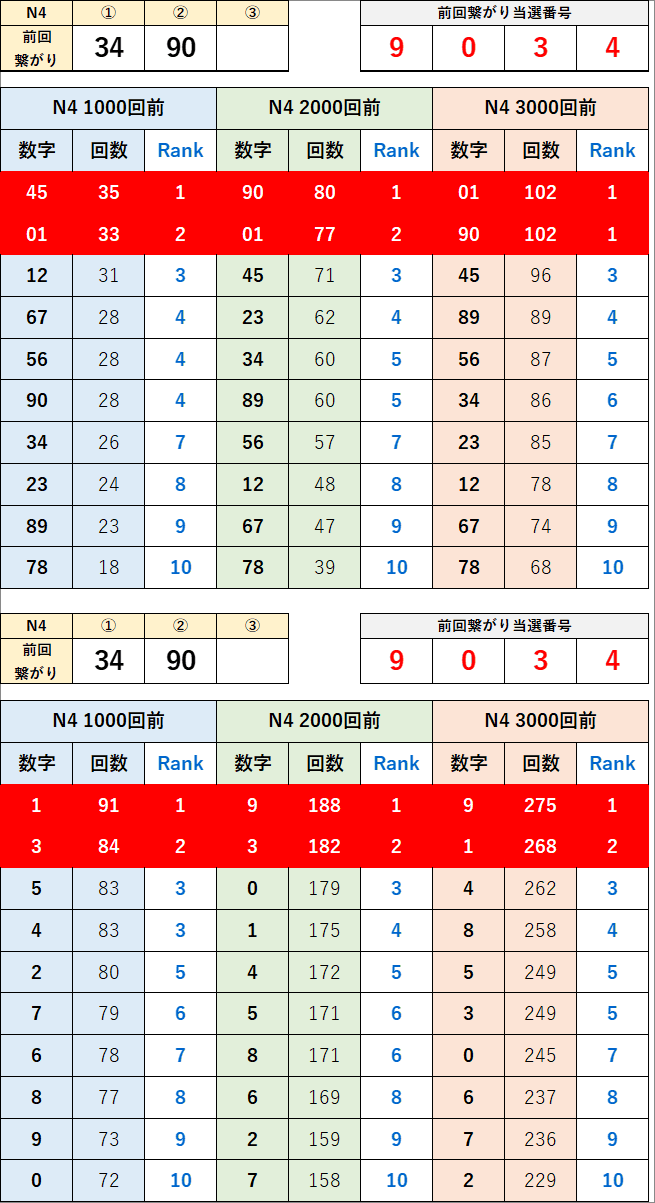直近の繋がり数字から過去次回に