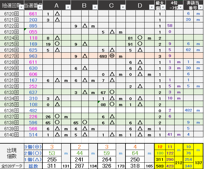 あと9位10位のスランプ数字入りの候補も当選に絡んでくるケースも