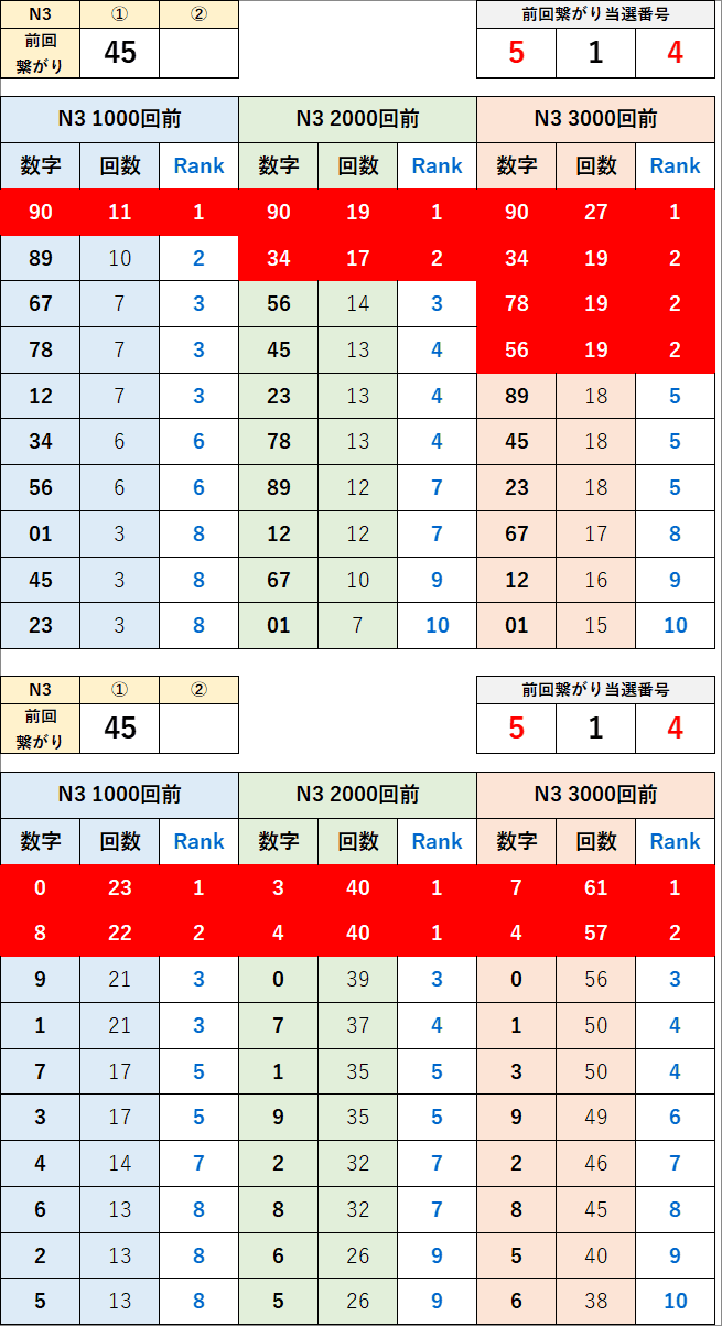 以前の周期予想を周期からよく出る予想数字からフィルターを