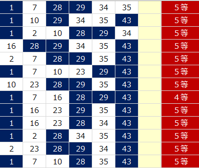 ナンバーズ当選結果
