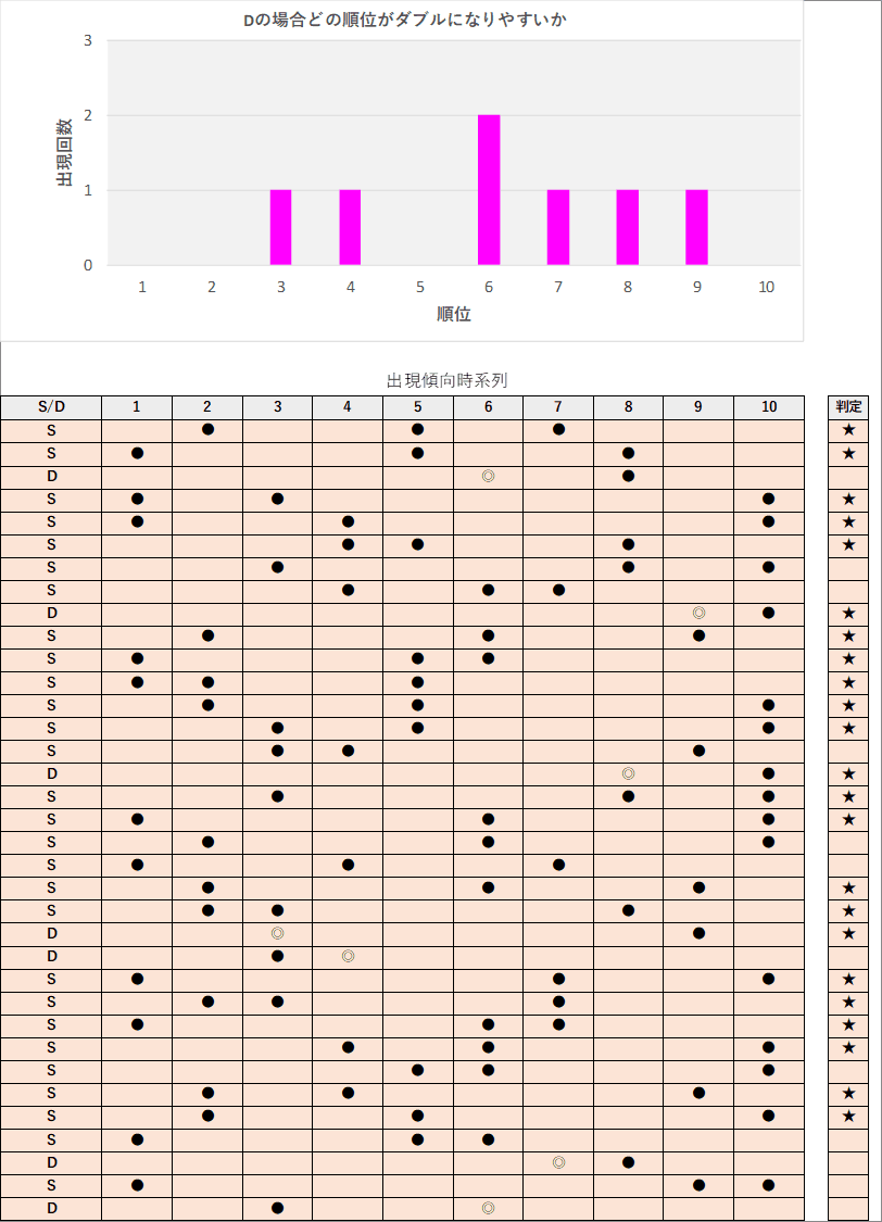 直近5回とS,Dの種類の出方を