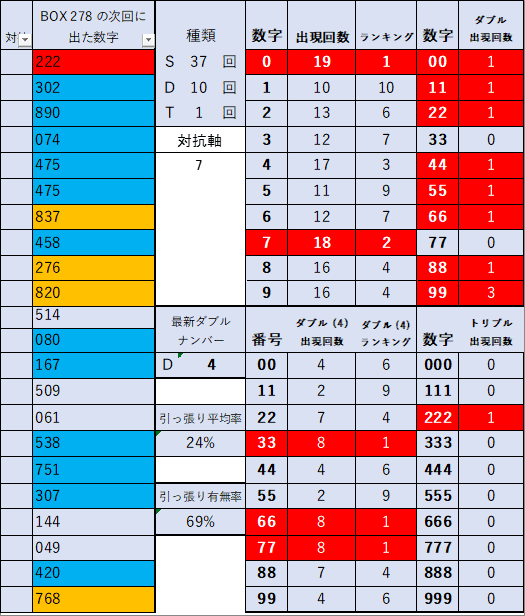 前回当選番号 278