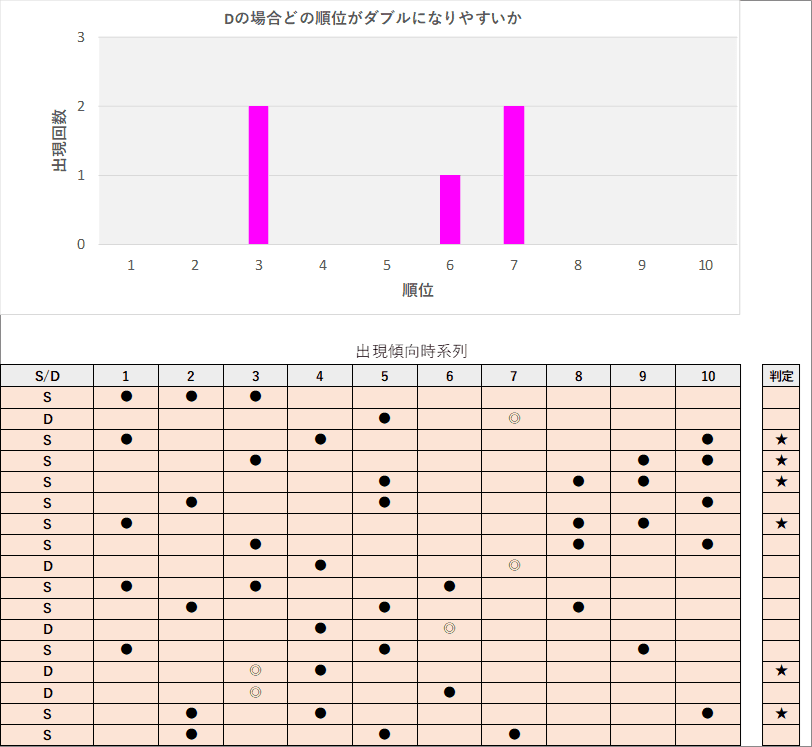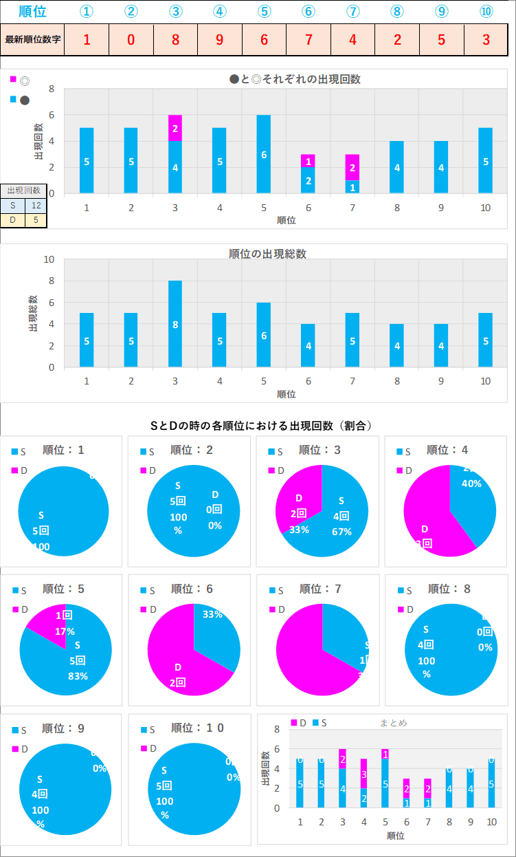 直近5回とS,Dの種類の出方を