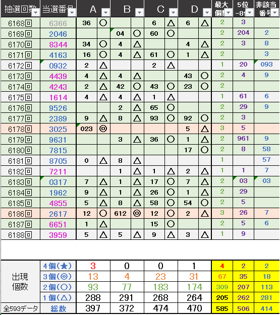 非該当数字青色=ABCDの候補に該当しない数字を青色表示としています。