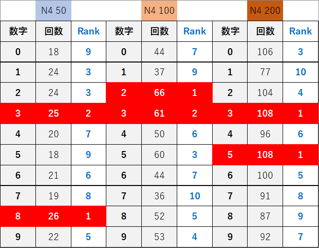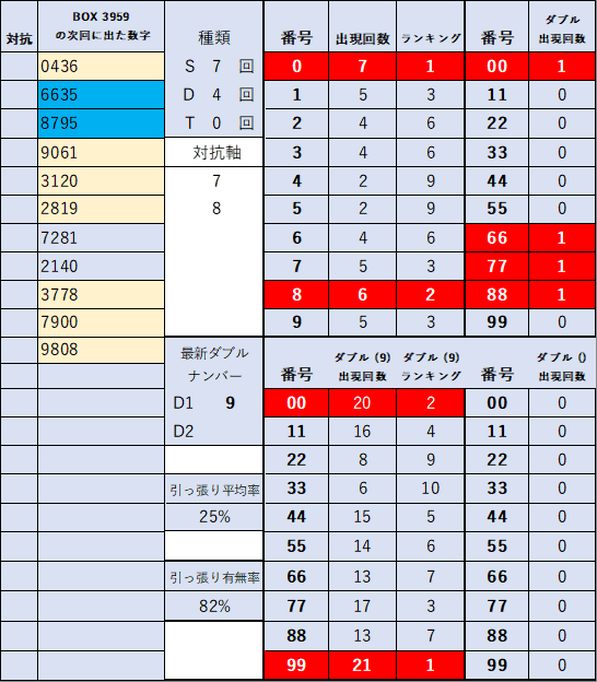 ペア数字解析データー