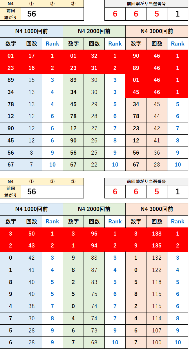 直近の繋がり数字から過去次回に