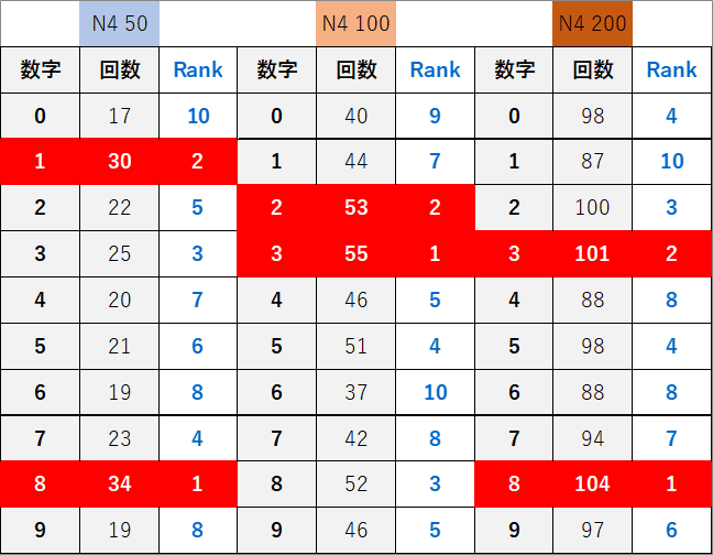 ペア数字解析データー