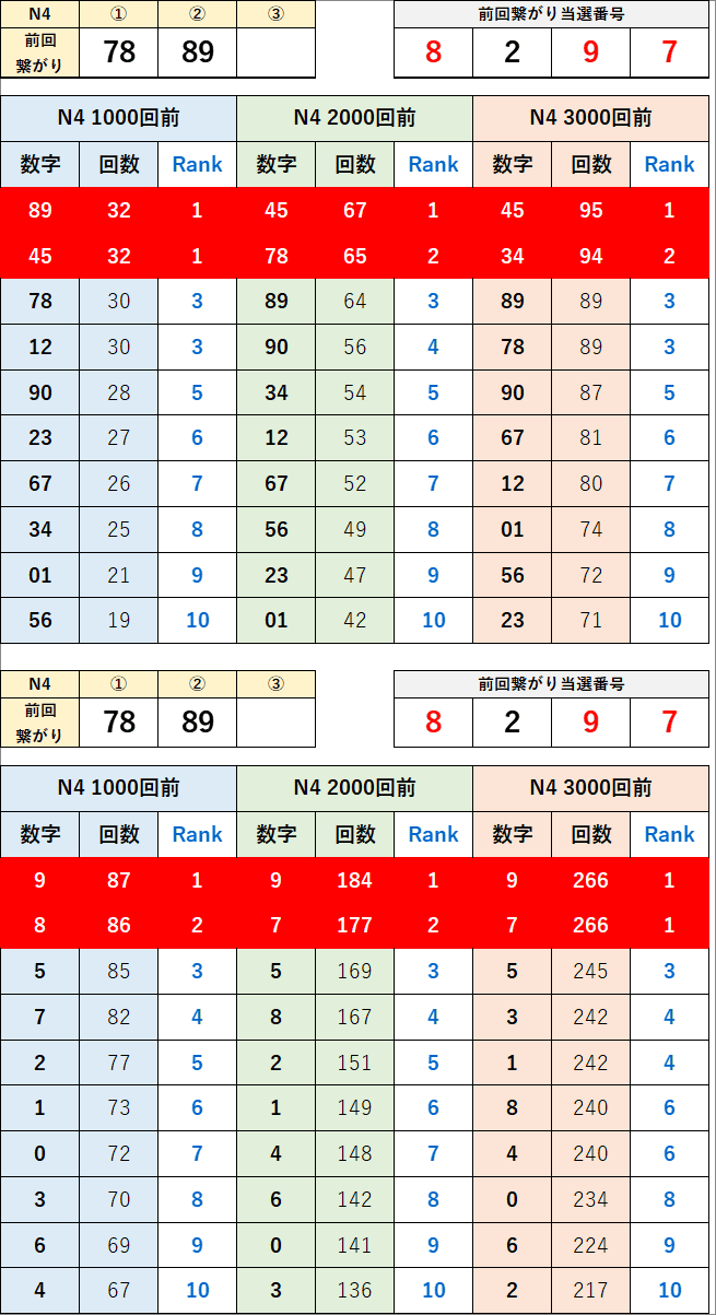 直近の繋がり数字から過去次回に