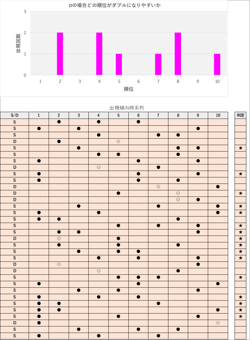 直近5回とS,Dの種類の出方を