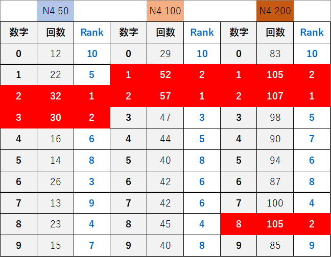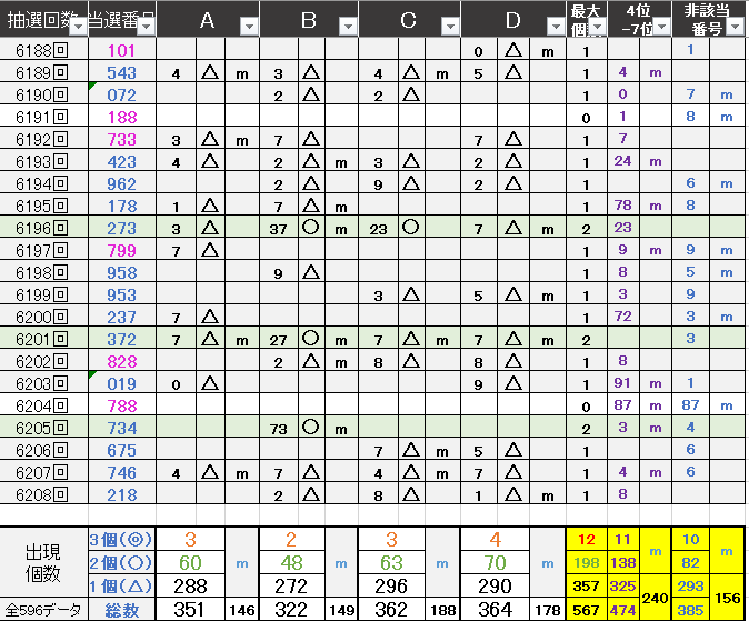 ペア数字解析データー