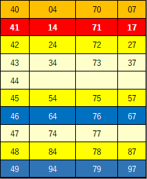 非該当数字青色=ABCDの候補に該当しない数字を青色表示としています。