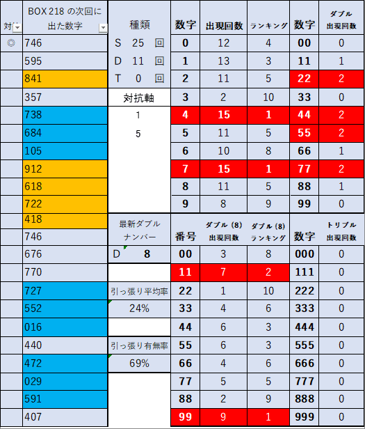前回当選番号 218