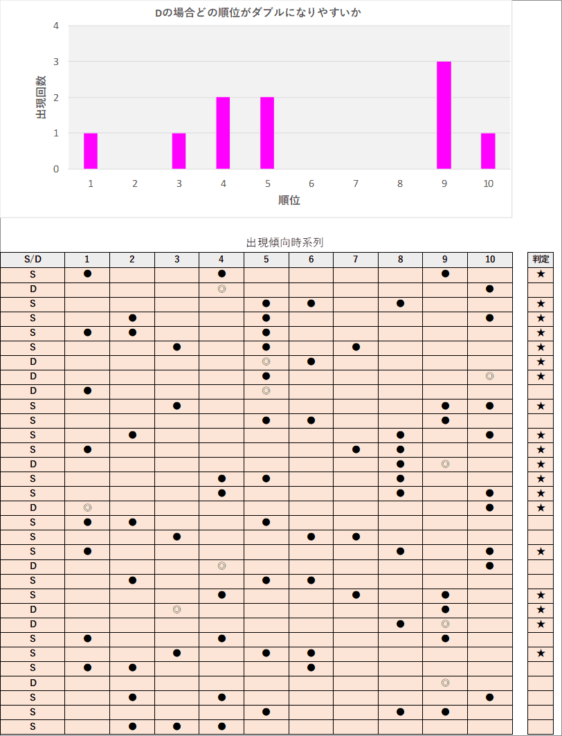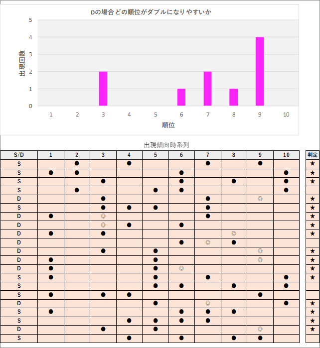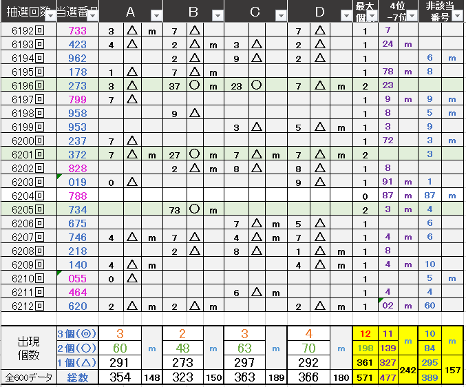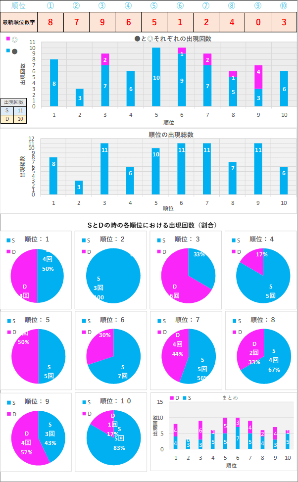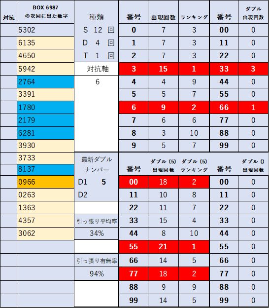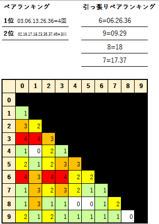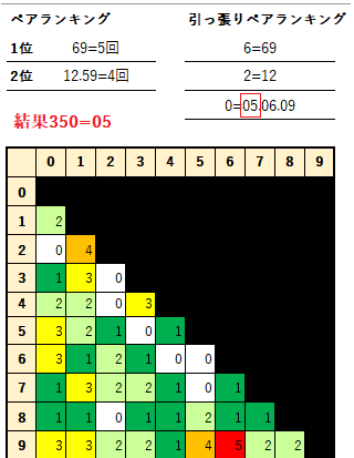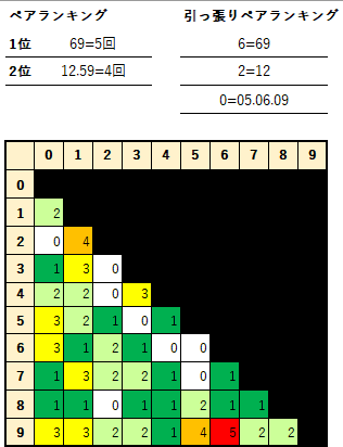 候補が多い場合はデーターAの1位の数字を軸としたペアのみを予想とします。