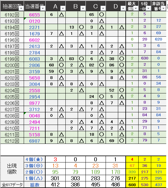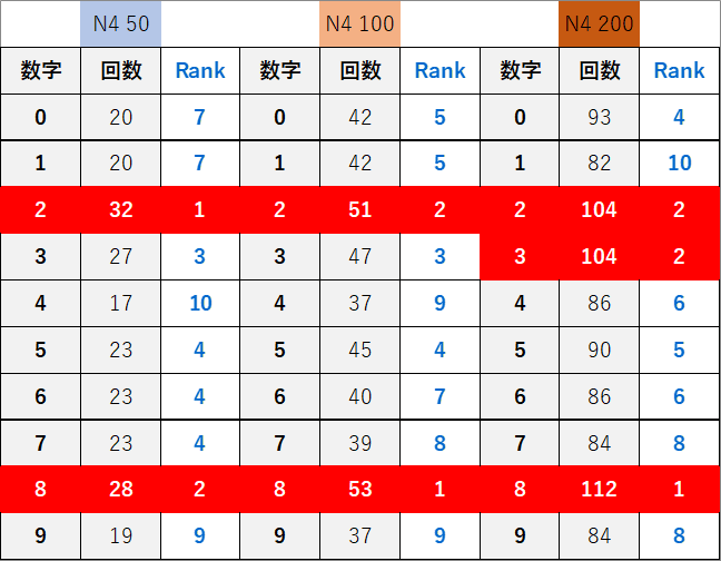 非該当数字青色=ABCDの候補に該当しない数字を青色表示としています。