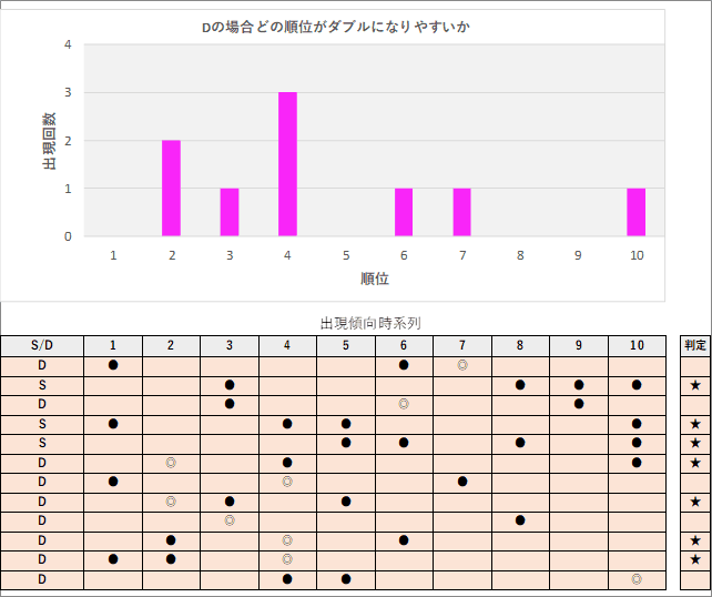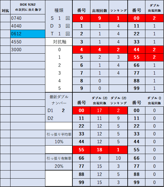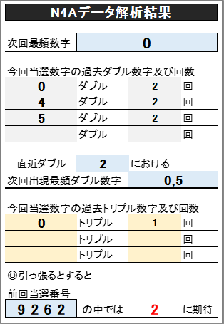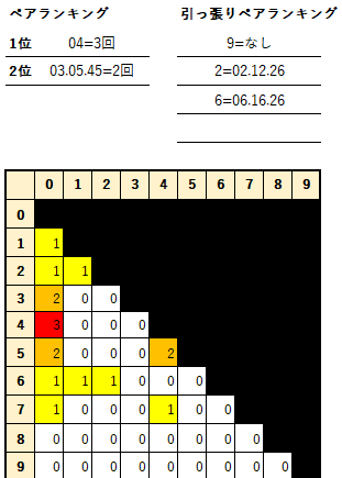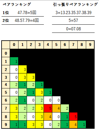 候補が多い場合はデーターAの1位の数字を軸としたペアのみを予想とします。