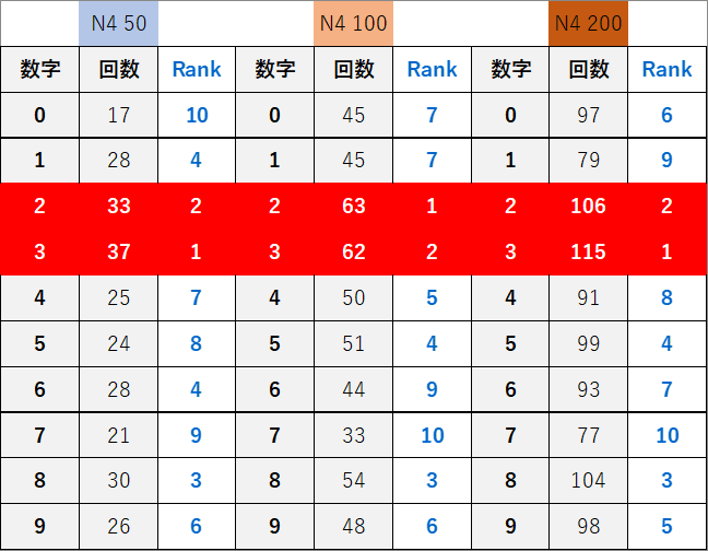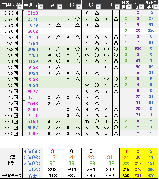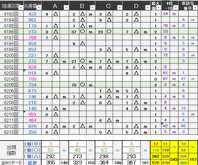 非該当数字青色=ABCDの候補に該当しない数字を青色表示としています。