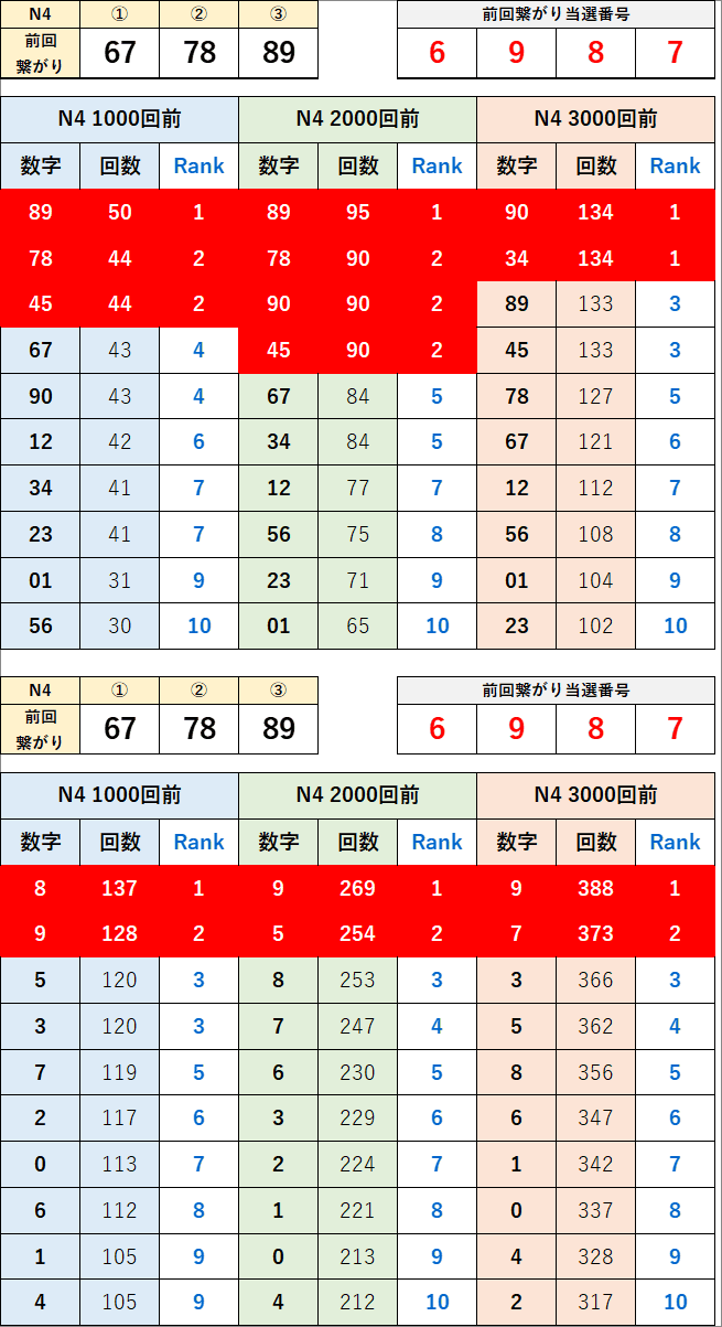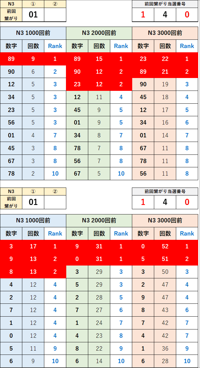 以前の周期予想を周期からよく出る予想数字からフィルターを