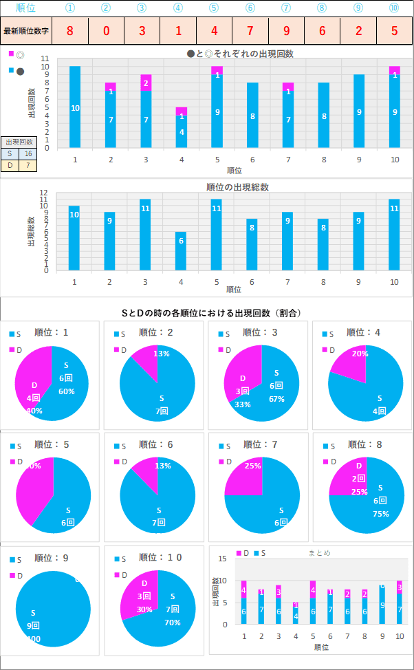 直近5回とS,Dの種類の出方を
