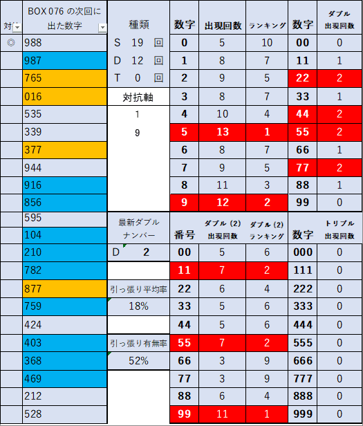 ペア数字解析データー