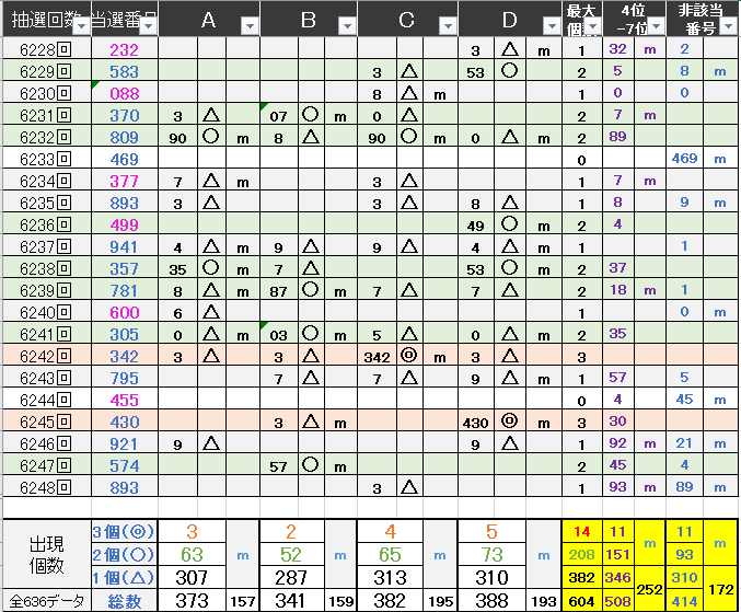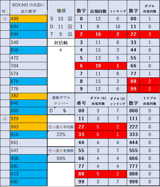 ペア数字解析データー