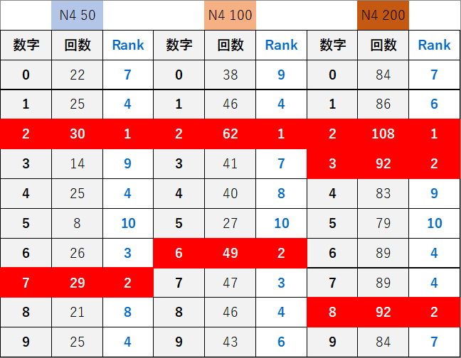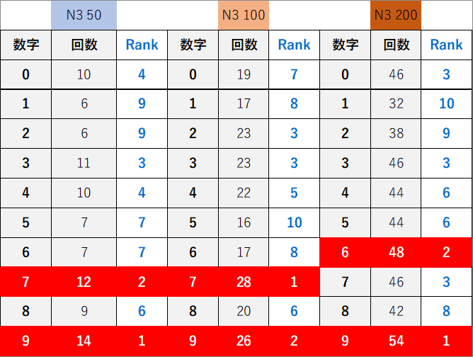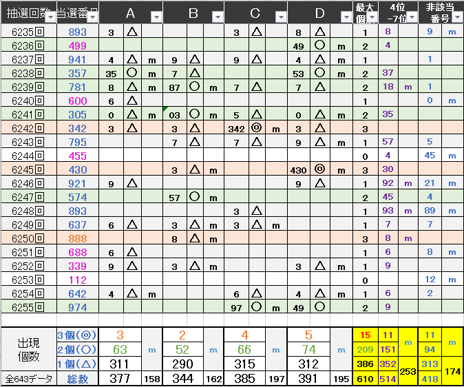 ペア数字解析データー