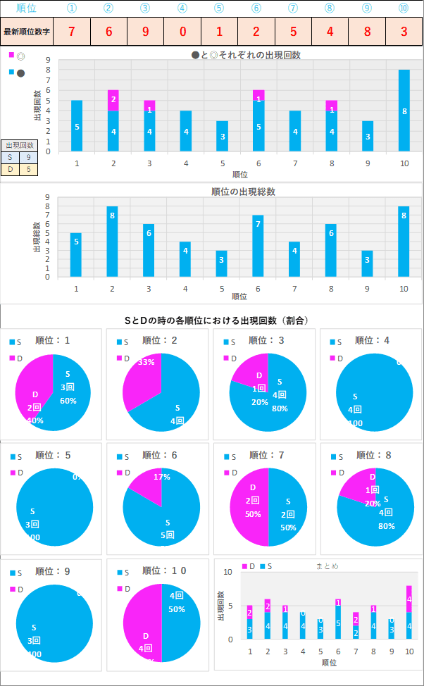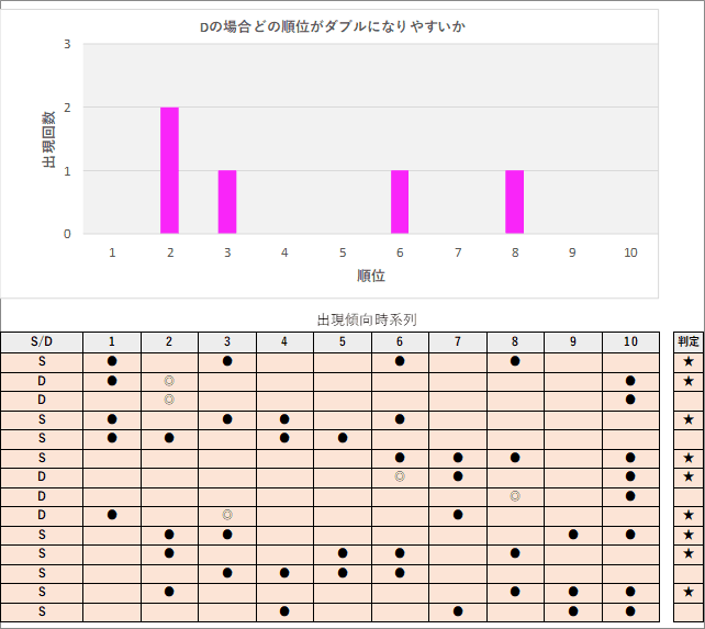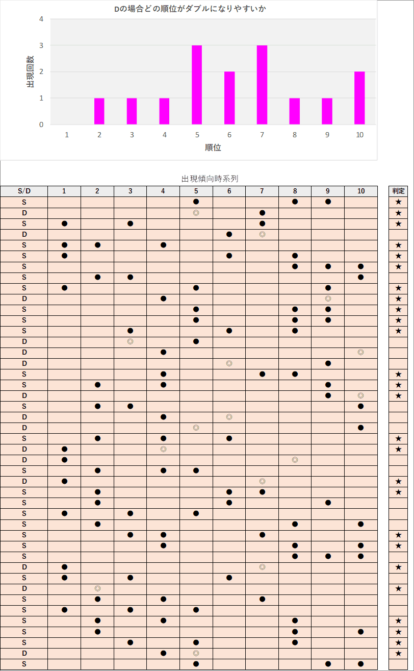 直近5回とS,Dの種類の出方を
