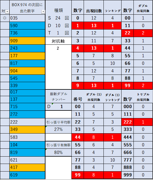 前回当選番号 974