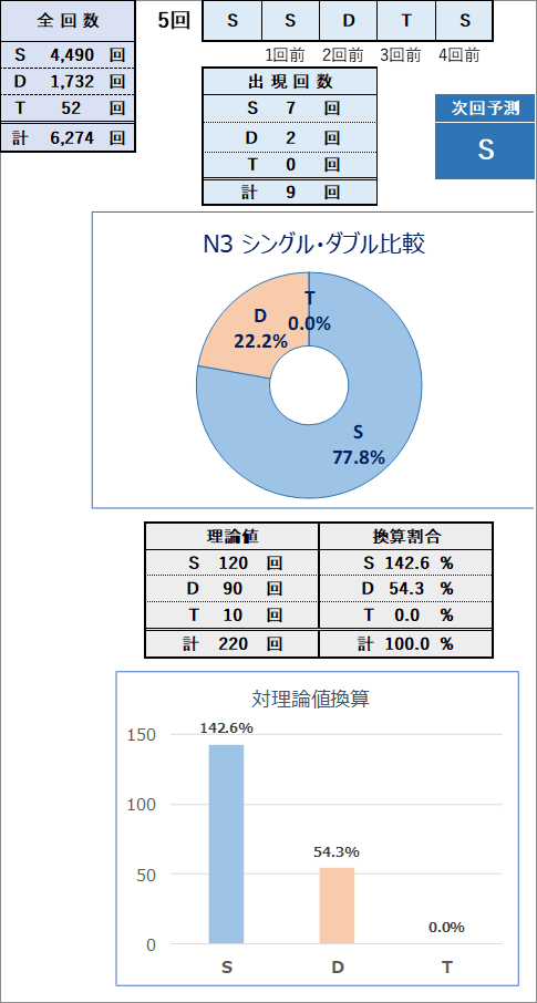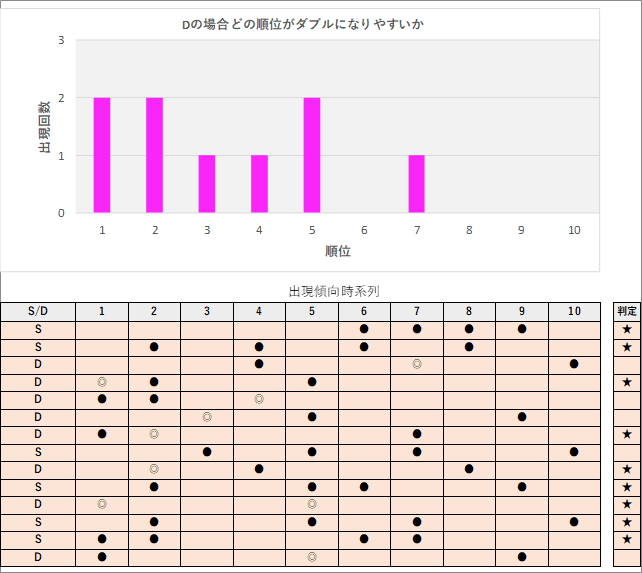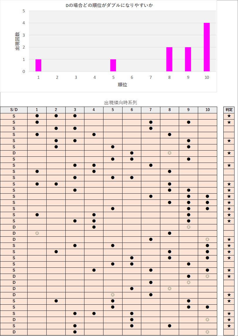 直近5回とS,Dの種類の出方を