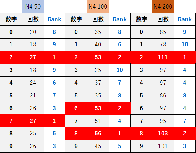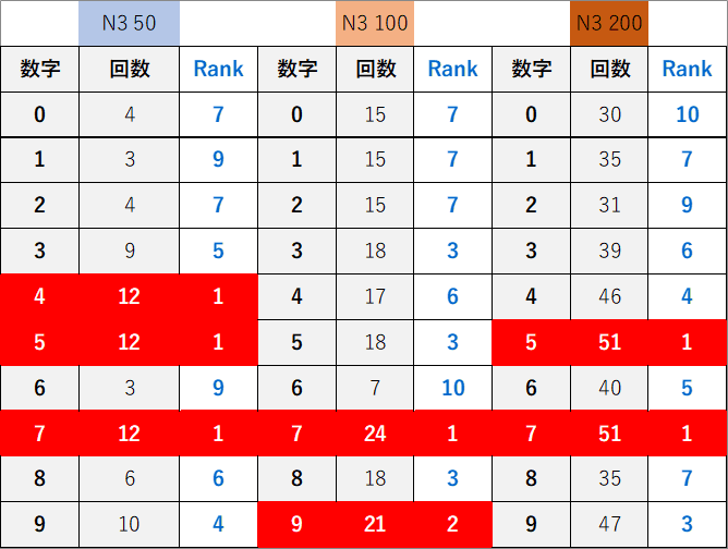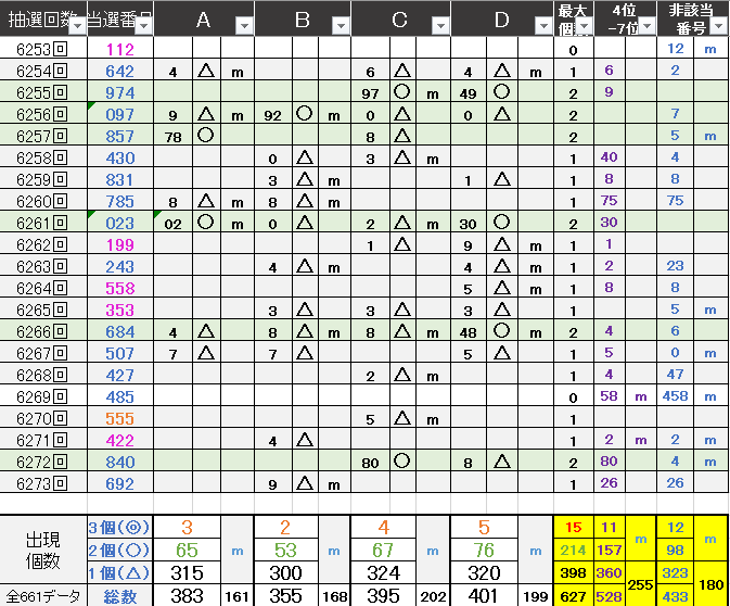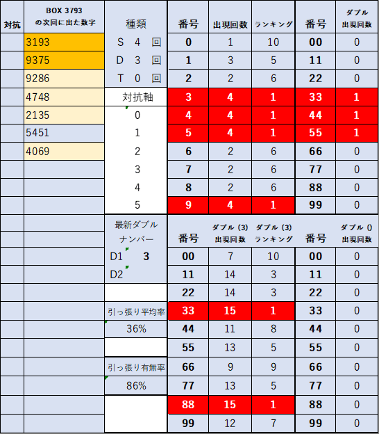 ペア数字解析データー