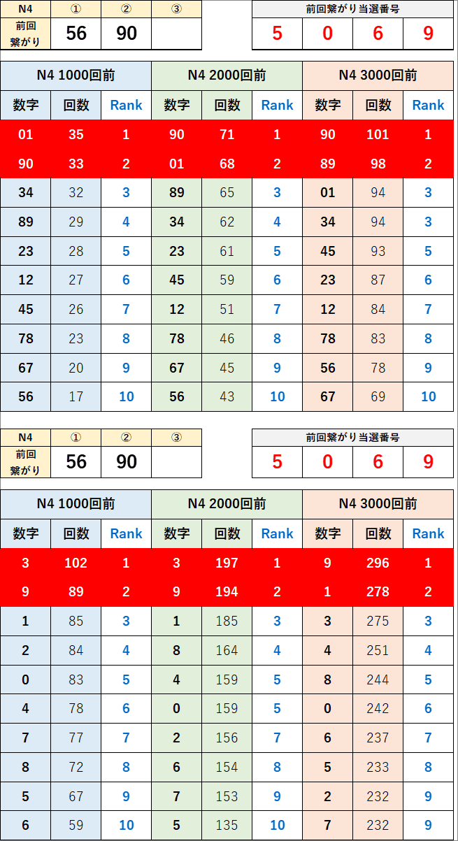 直近の繋がり数字から過去次回に