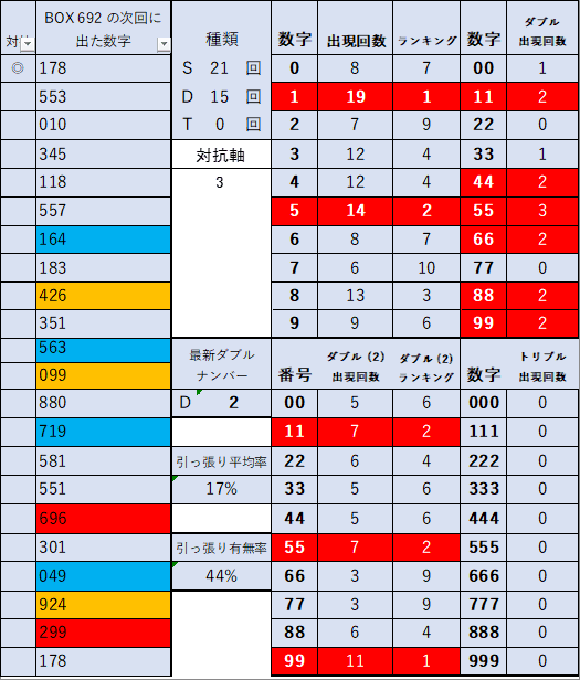 前回引っ張り数字 697