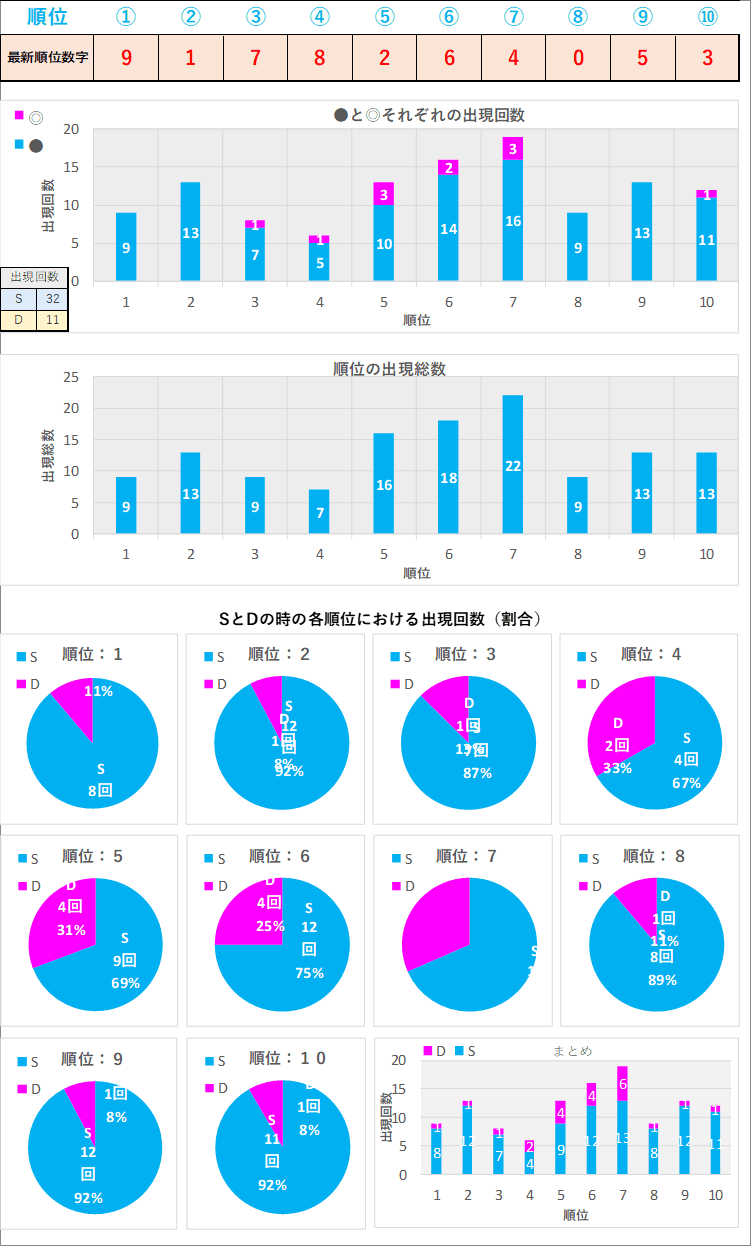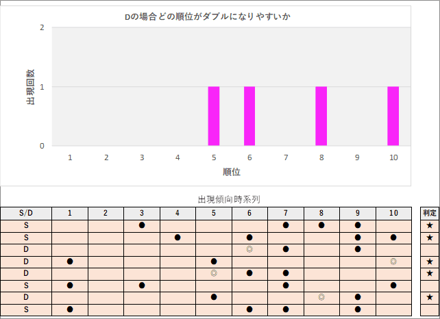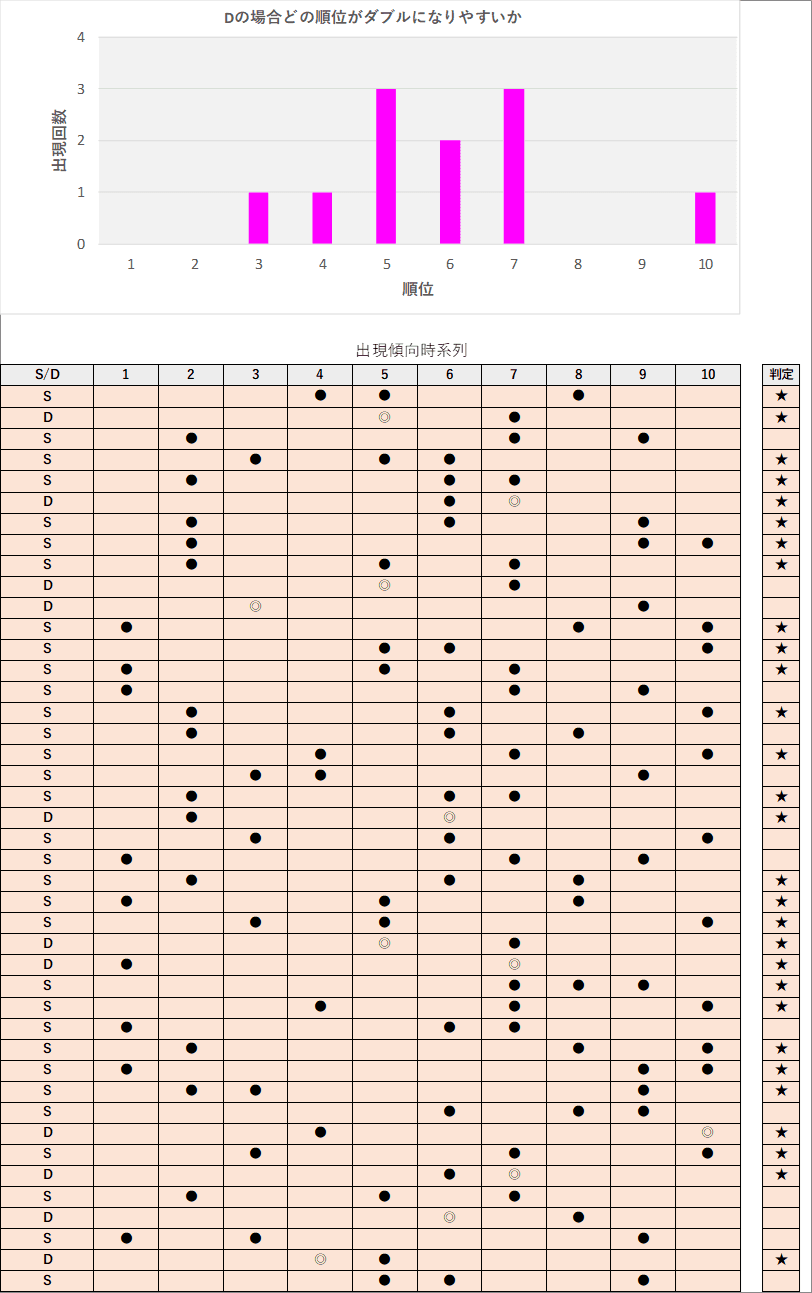 直近5回とS,Dの種類の出方を