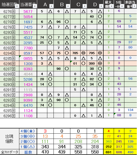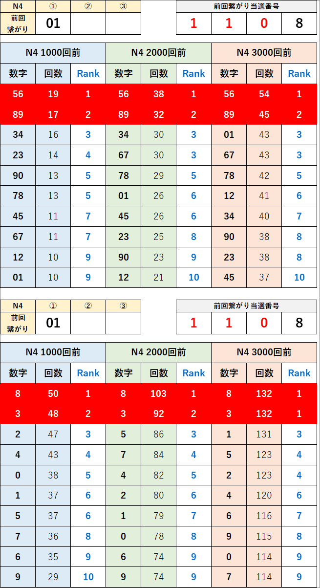 直近の繋がり数字から過去次回に