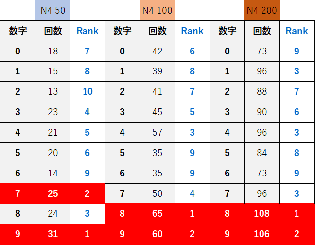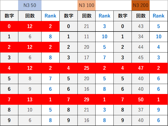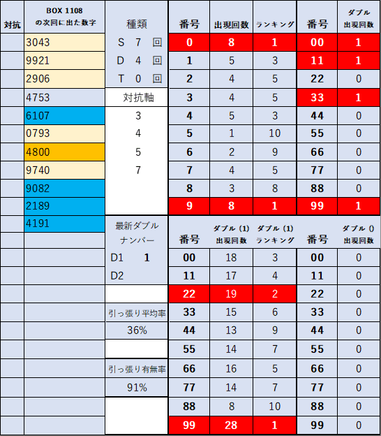 ペア数字解析データー