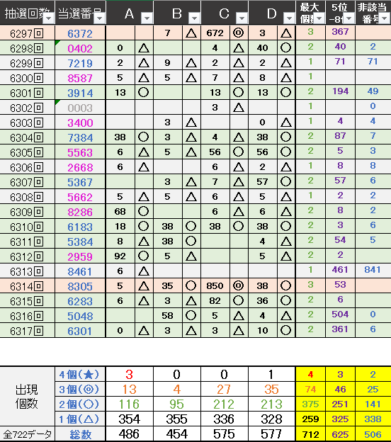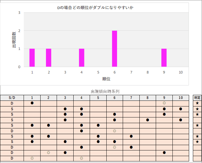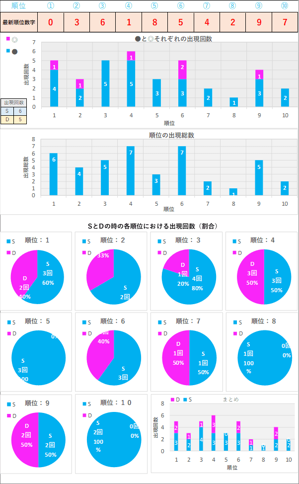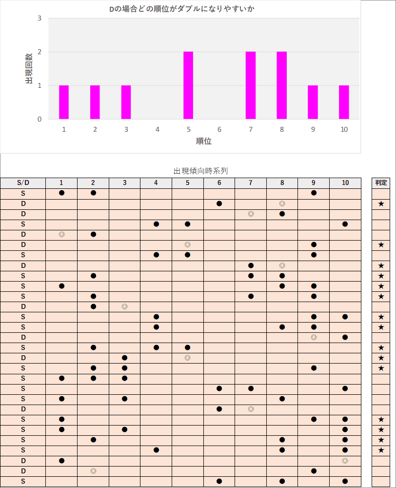 直近5回とS,Dの種類の出方を