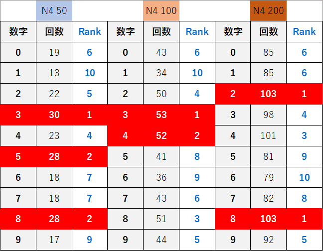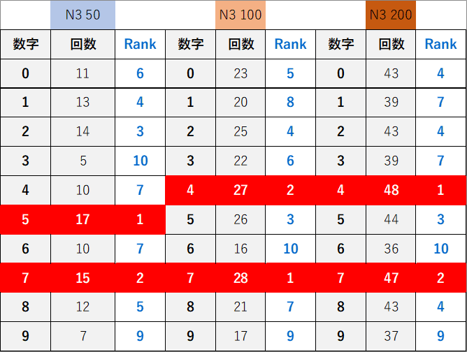 ペア数字解析データー