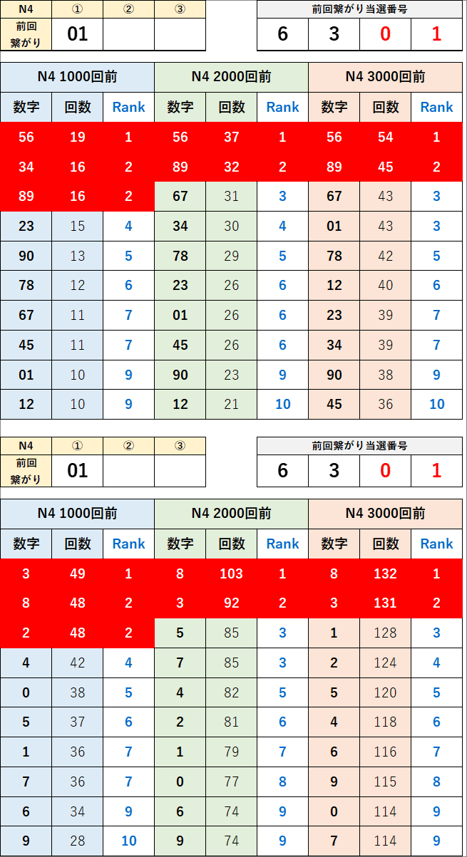 直近の繋がり数字から過去次回に