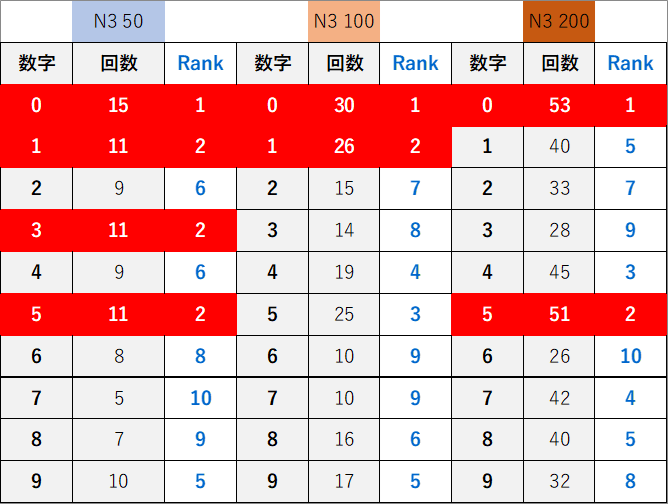 ペア数字解析データー