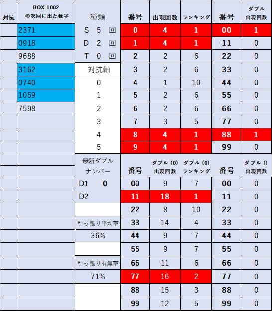ペア数字解析データー