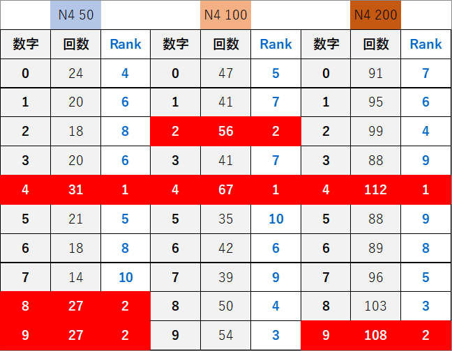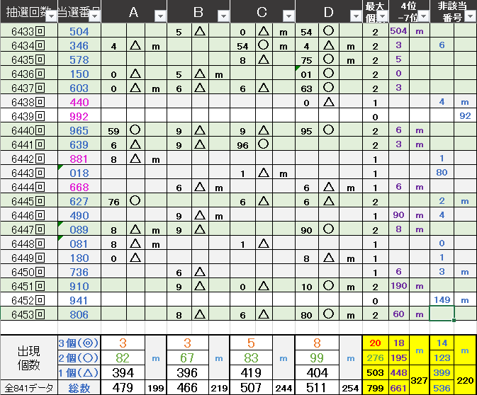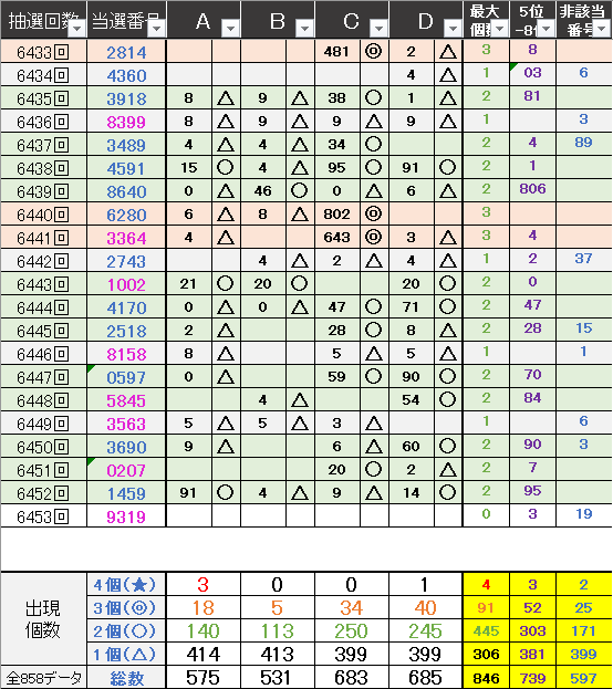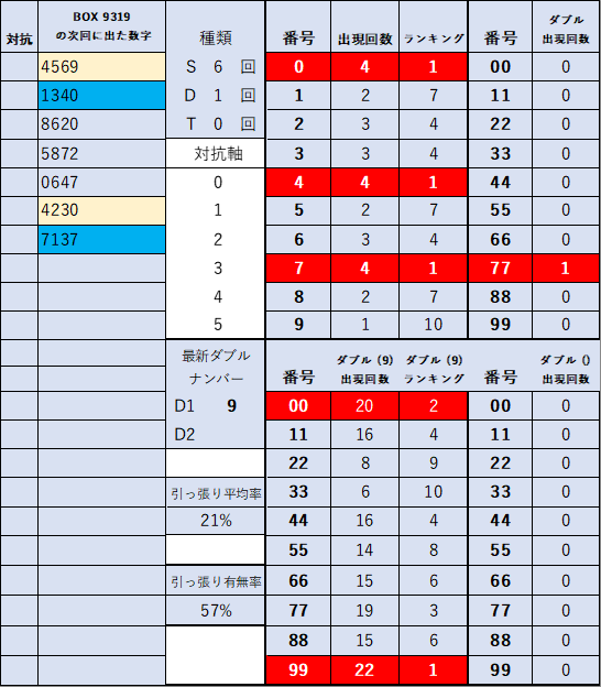 ペア数字解析データー
