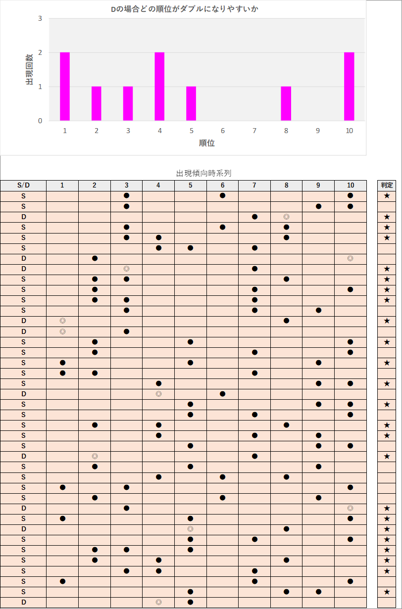 直近5回とS,Dの種類の出方を