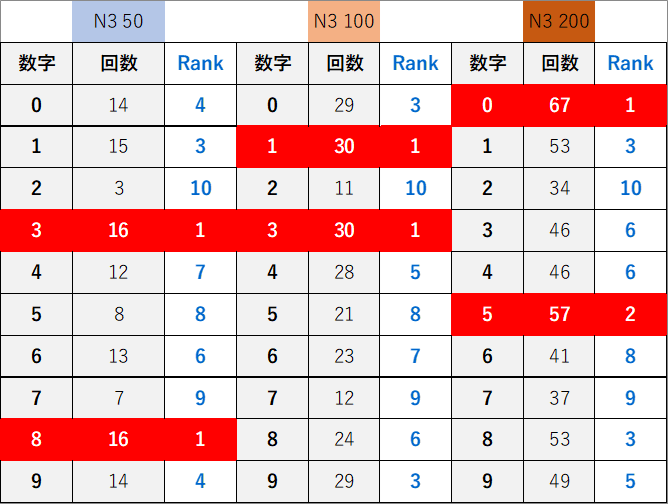 個別数字のデータ