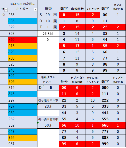 前回引っ張り数字 6 2